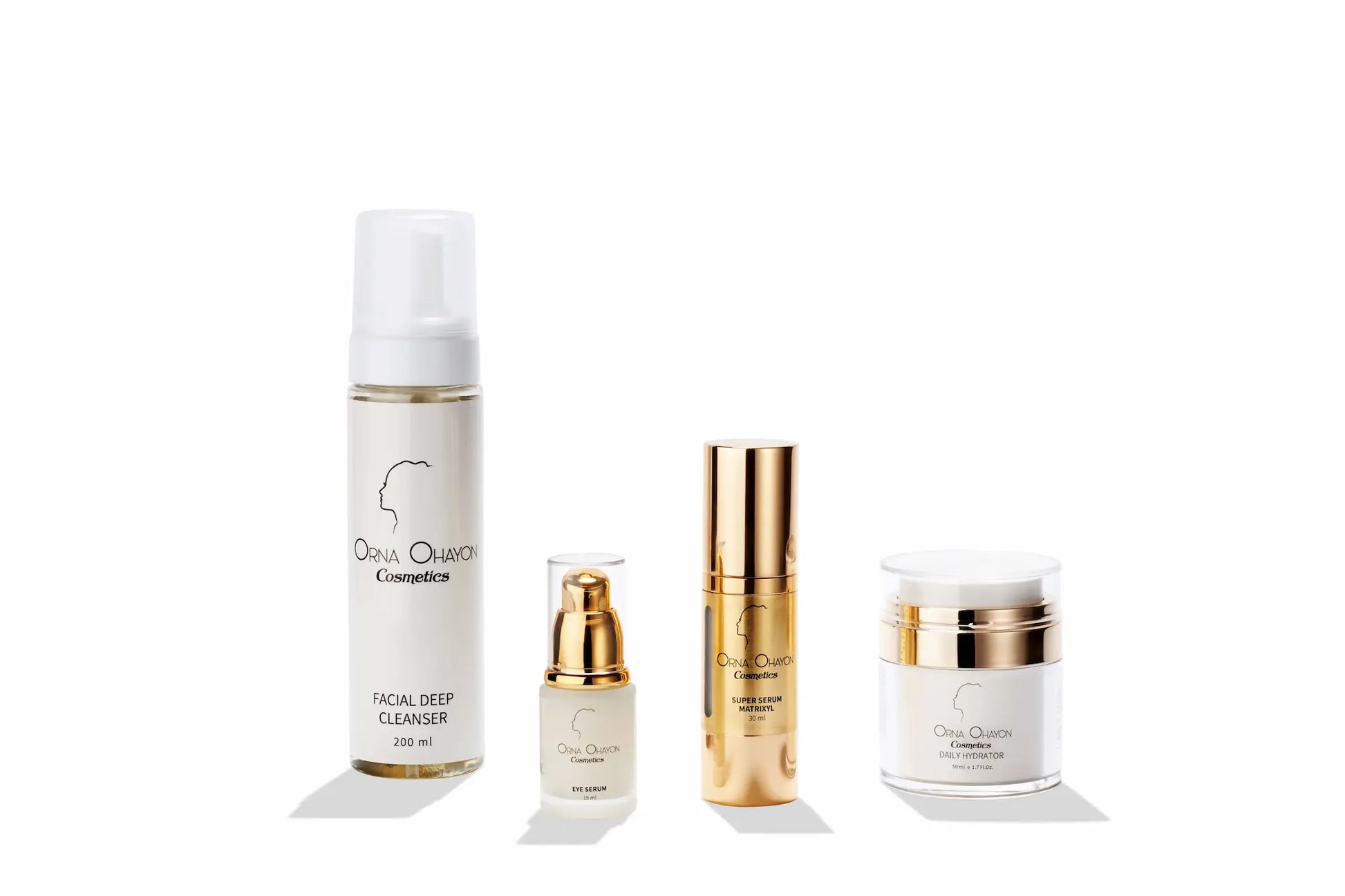 - בוקר: סרום מטריקסיל, סרום עיניים, קרם לחות עם SPF.